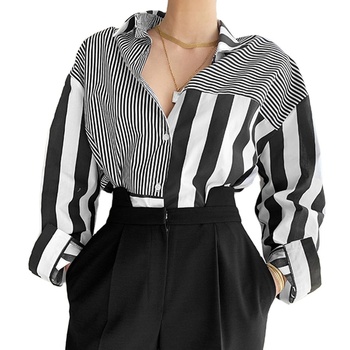 ANSZKTN-Blusa informal holgada de manga larga para mujer, blusa a rayas de Color con solapa, 2021