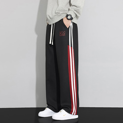 ANSZKTN-Pantalones informales de pierna ancha para hombre, pantalón de chándal deportivo holgado con estampado de rayas rectas