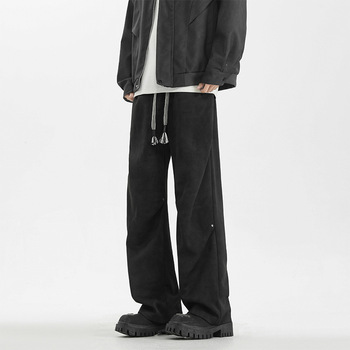 ANSZKTN-Pantalones de estilo americano Vibe Tie-dyed Mid Flat Worsted Men's Machete Design Pierna ancha Rectos Sueltos Primavera Otoño Pantalones Casuales