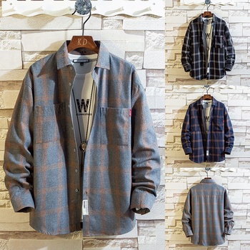Camicia a maniche lunghe a quadri di grandi dimensioni da uomo autunno nuova versione coreana di camicia Casual allentata