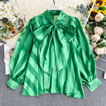 Camicetta allentata in raso con maniche a sbuffo ANSZKTN da donna in stile ANSZKTN