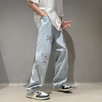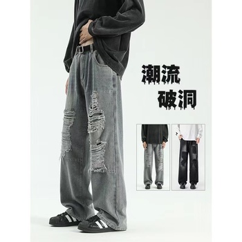 Anszktn Quần jean rách đường phố cao cấp kiểu Mỹ quần ống đứng rộng thương hiệu thời trang mới mùa xuân và mùa thu cho nam ống rộng đa năng