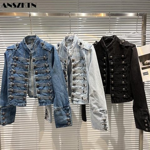 ANSZKTN Áo Khoác Ngắn Cổ Điển Thiết Kế Khóa Sườn Kim Loại Cổ Điển Mới Áo Khoác Denim Nữ